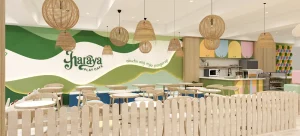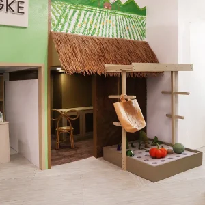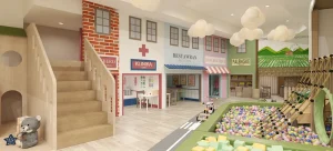 Where play is thoughtfully designed, imagination naturally unfolds. For the Hanaraya Play Cafe Project, IEO Studio Inc. created an immersive, child-centered environment that balances playfulness with design discipline. The entrance sets the tone with fluid green forms and illustrated landscapes, establishing a welcoming identity that seamlessly transitions into a cohesive interior narrative. Inside, a village-inspired layout introduces familiar settings—market, restaurant, hospital, and fire station—scaled for children to encourage imaginative role play, while suspended cloud features soften the ceiling and enhance the whimsical atmosphere.